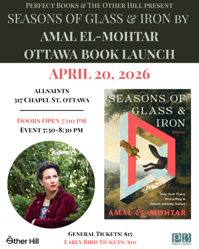 Join us for the Ottawa launch of Hugo Award-winning, New York Times Bestseller, local favorite, AND former Perfect Books bookseller Amal El-Mohtar’s latest book, Seasons of Glass & Iron: Stories.