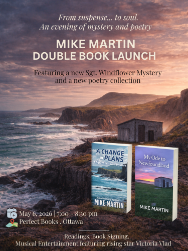 Join Mike Martin for the launch of TWO books: A Change in Plans (A Sgt. Wildflower Mystery) and My Ode to Newfoundland (A Poetry Collection). Featuring music by Victoria Vlad.