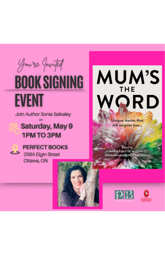 Celebrate Mother’s Day with this lovely anthology, Mum's the Word, by Guernia Editions all about mothers, with contributor Sonia Saikaley! She will be in store chatting about her story in the book and signing books from 1-3pm.