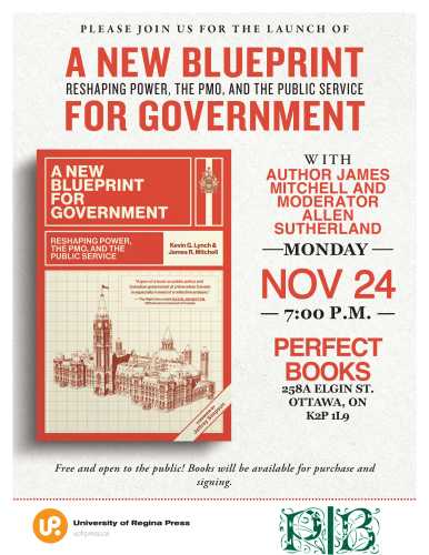 Is the Canadian government contributing to its own underperformance? Join us for the launch of A New Blueprint for Government: Reshaping Power, The PMO, and the Public Service with author James Mitchell as he shares an insider’s guide to steering our nation toward greater efficiency. This event on Monday, November 24th at 7pm will be hosted by Perfect Books (258A Elgin St., Ottawa) and the author will appear in conversation with Allen Sutherland.