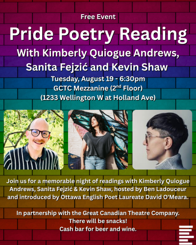 Join us for an unforgettable evening of poetry hosted by Ottawa’s English language poet laureate, David O’Meara, as he welcomes Griffin Poetry Prize-winner Billy Ray Belcourt, Windham-Campbell Prize-winner Canisia Lubrin and Governor General’s Award–winner katherena vermette back to the Festival stage.