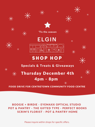 And for even more fun, come by between 4-8pm to take part in the Elgin Shop Hop fun with all our Elgin Street friends!
